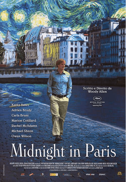 파리에 관련한 영화는 항상 나의 눈길을 사로잡는다. 거기에 우디 앨런과의 만남이라니! <미드나잇 인파리>는 시간과 공간의 경계를 초월하는 판타지 성격의 매력으로 관객을 파리의 예술, 문화, 역사 속으로 초대하는 영화이다. 영화의 시작 첫 장면부터 감미로운 음악과 함께 펼쳐지는 파리의 경치는 영화가 보여주고자 하는 분위기에 흠뻑 빠져들게 만들고 마치 파리에 와 있는 것만 같은 착각이 들게 만든다. 아마 이런 영화적 분위기는 우디 앨런 감독의 특징이 아닐까 싶은데, 이번 글에서 우디 앨런 감독의 스타일에 대해 알아보고 영화 속에서 등장하는 문학 및 예술 관련 인물들 그리고 파리의 상징에 대해서 알아보고자 한다.